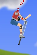 He is capable of reattaching to his vehicle after ejection, even if his legs have broken, and, infrequently, even after being torn in half. Pogostick Man is very resistant to damage and in many cases can survive long falls, though his freer movement can make him more vulnerable. Due to the way his pogo stick functions, it is nearly impossible for him to move up slopes whilst on them. When falling from long distances, holding Ctrl to crouch down is suggested to cushion the fall.